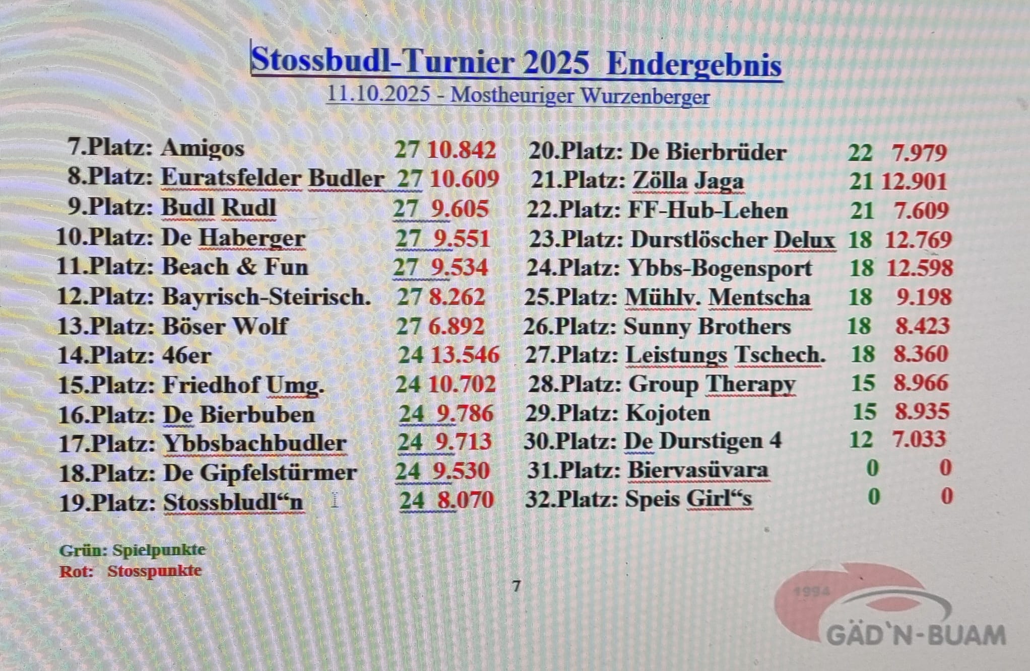 Sieg beim Gädn Stossbuddl Turnier